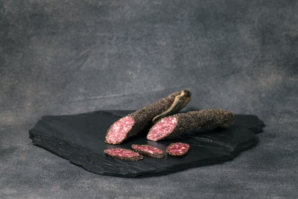 Salami a la pimienta verde