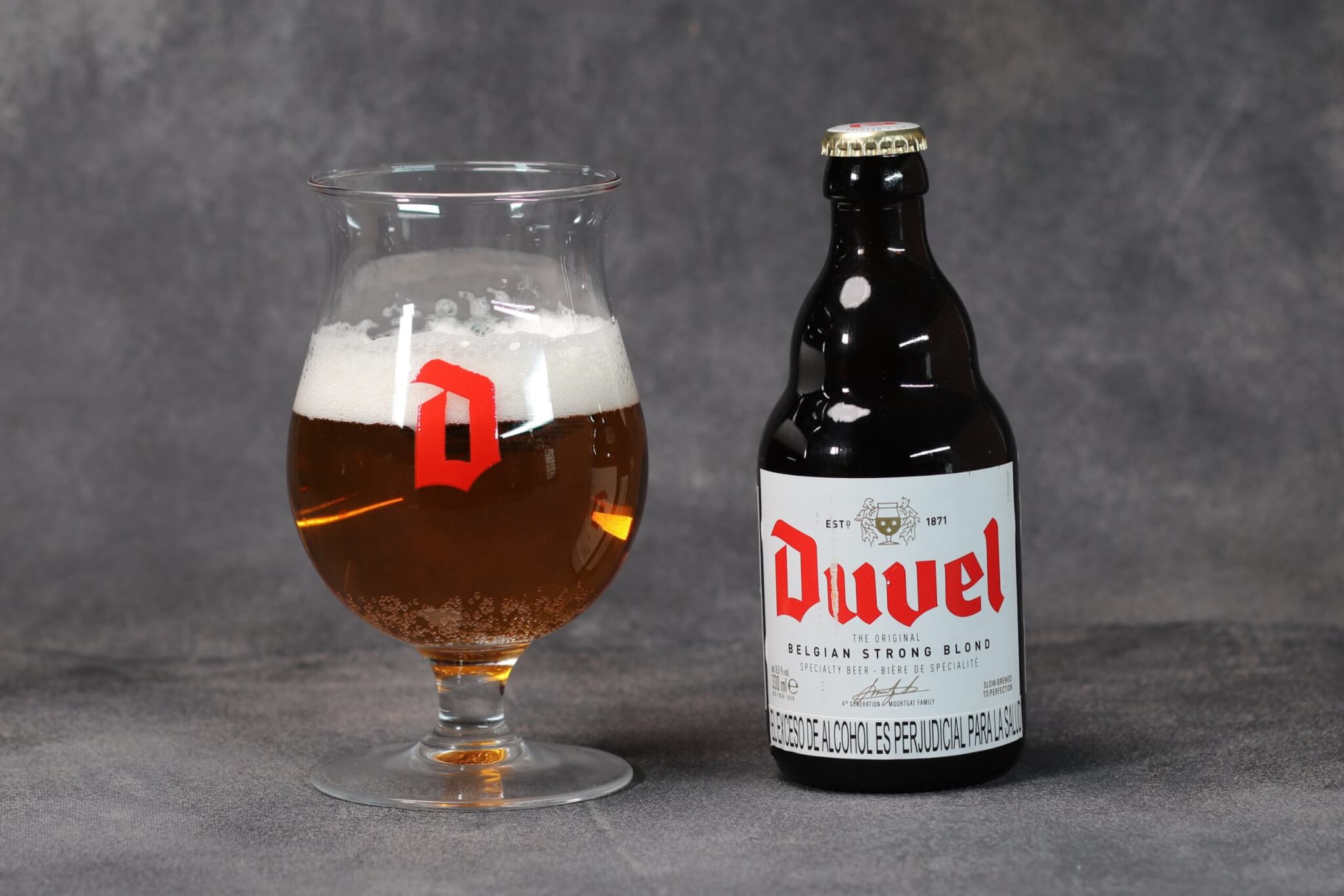 Cerveza belga de estilo Golden Strong Ale, reconocida por su equilibrio entre potencia y elegancia. De color dorado brillante y espuma abundante, ofrece aromas a frutas, levadura y notas florales. En boca es seca, afrutada y con un amargor fino que limpia el paladar.