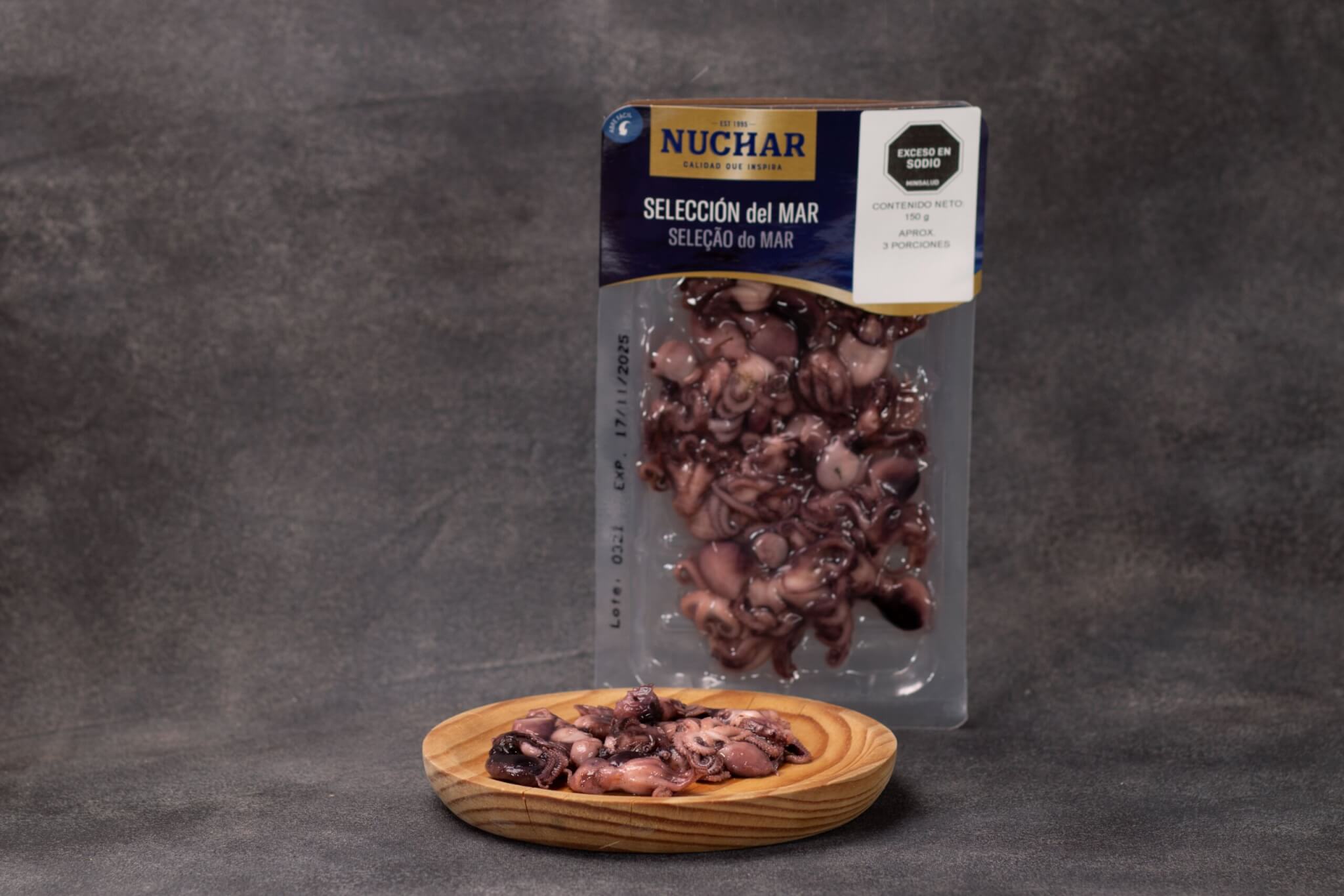 Tiernos pulpitos cocidos provenientes del Océano Indico y listos para consumir. Solo necesitan un breve calentamiento para añadir a pastas, paellas o ensaladas. Su textura suave y sabor delicado los convierten en una opción práctica y deliciosa para disfrutar del auténtico sabor del mar.